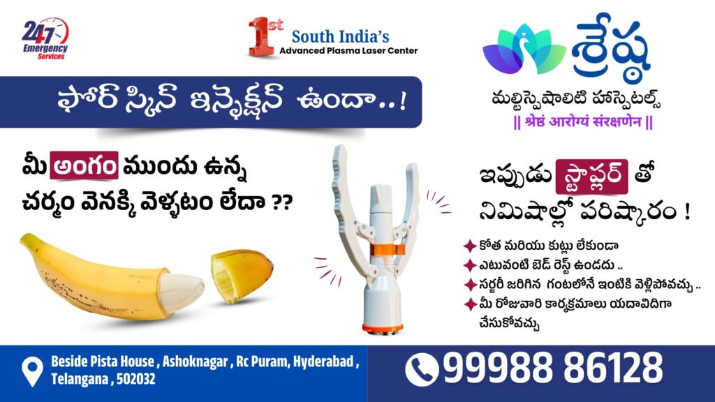 At Sreshta Multi Speciality Hospitals, we offer the latest advancement in circumcision — the Stapler Circumcision technique, known for its precision, speed, and comfort. As South India’s 1st Advanced Plasma Laser Center, we are proud to bring this revolutionary, minimally invasive procedure to Hyderabad.